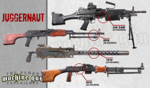 Grunts are the backbone of America’s finest, often served fully-equipped with these very firearms that you can shoot at our firing range in Las Vegas. Armed with the M4 machine gun and the always reliable Glock 9mm, you’ll love the experience at the best firing range in Las Vegas, the Vegas Machine Gun Experience.