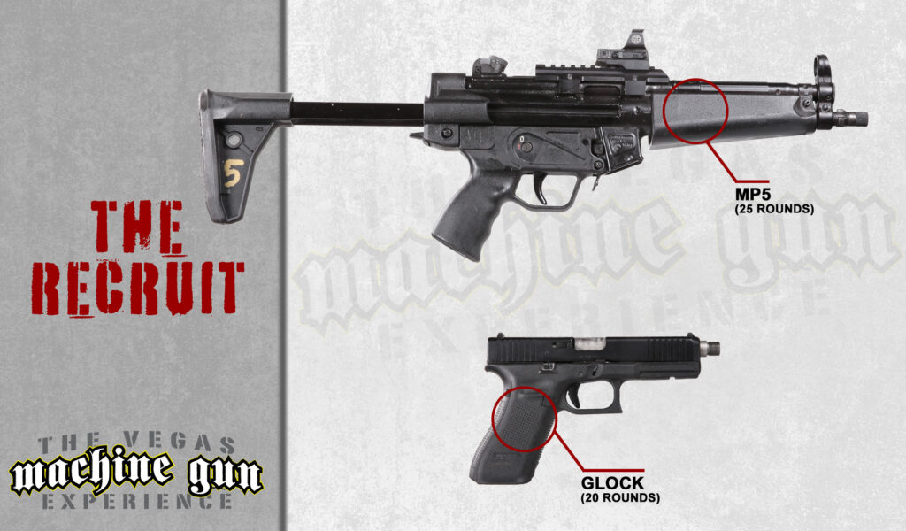 Come try the standard issue pistol and submachine gun that you get at the beginning of every video game. Start with a classic pistol and then pick up the iconic MP5!